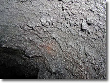 「あまり響かないですね。溶岩の壁の中にはたくさんの隙間があって、ここに音が吸い込まれていってしまうんです。だから、あまり音は響かないんですね。ところで、この氷の厚さはどのくらいだと思いますか?」