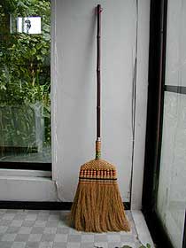「面白い話がありますよ。この非電化工房のアトリエには色々なお客さんがお見えになるんですね。で、今まで何回かこういうテストをしました。最新鋭の電気掃除機がわざとここにおいてあるんです。女性の方ばかり、30人以上テストしました。その人達にわざとゴミを撒き散らして、電気掃除機で掃除してもらうんです。で、そのあとに名人が作ったほうきがあるんですが、そのほうきで掃除してもらいます。そこで私が『どちらがうまく掃けましたか?』って質問すると、全員が『ほうきの方がうまく掃けました』って答えます。それはなぜかっていうと、ここはフローリングと畳だからなんですね。電気掃除機っていうのはカーペットのために作られたわけですから、カーペットだけは話が別なんですけど、みんなが部屋中カーペットなわけではおそらくないでしょうから、畳とフローリングだったらもちろん、ほうきの方がうまく掃けるでしょうから、全員が『ほうきの方がうまく掃けました』っていう答えでした。そこで、私は2つ目の質問をします。『どちらが愉しく掃けましたか?』って聞くと、全員が興奮して『ほうきの方が愉しかった』って答えるんですよ。それじゃあ、3つ目の質問なんだけど、『じゃあ、なぜ普段の掃除は電気掃除機でやるんですか?』って聞くと、みなさんオタオタしちゃって(笑)。最終的には異口同音でなんておっしゃったかっていうと、『明日からほうきにします』って言っていました。